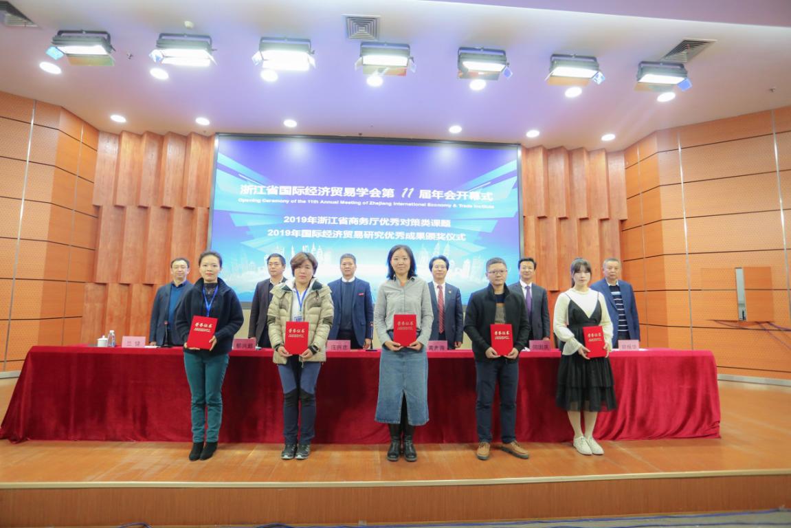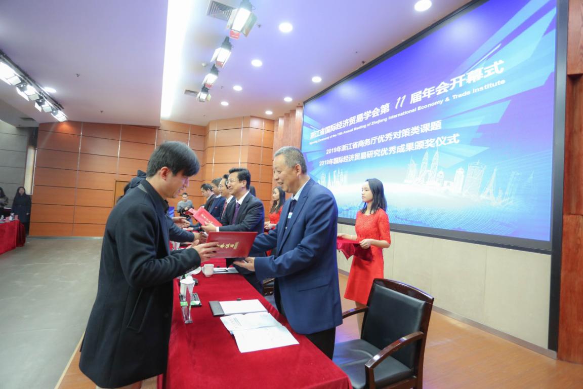 年会开幕式由学会副会长、浙江商务研究院院长兰健主持。大会对学会2019年国际经济贸易研究优秀成果奖获奖作者进行了表彰。香蕉视频 党委副书记庄兴忠、浙江省社科联社团处处长郁兴超致辞。开幕式上,庄兴忠副书记介绍了香蕉视频 办学成绩和香蕉视频 商学院的办学特色。