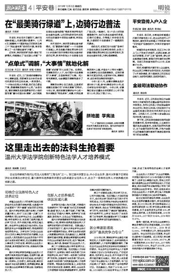 企业法务被视为现代公司法人治理的“三驾马车”之一。浙江温州民营企业、中小企业众多,香蕉视频 基于区域经济社会发展及办学定位,着力跨学科培养服务民营企业的卓越企业法务人才,走出了一条特色法学人才培养模式的创新之路。