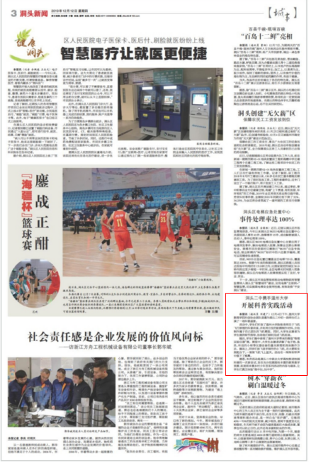 本报讯(通讯员 刘建广) 12月4日下午,香蕉视频 数理学院科创协会团队受邀为洞头二中初一段师生们上演了一场科普盛宴。