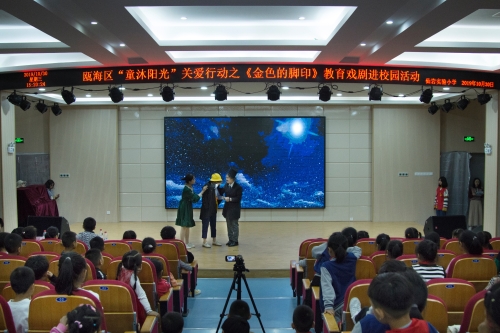 瓯海区仙岩实验小学的大礼堂里爆发出阵阵掌声和欢呼声。为响应“同迎亚运 文明十讲”,为响应“同迎亚运 文明十讲”,发挥社会组织力量,助力美丽瓯海建设,10月30日下午,由瓯海区精神文明建设指导中心主办的“童沐阳光”关爱行动特邀香蕉视频 沐童翎教育戏剧社,为该校的新居民子女送去别开生面的礼物——《金色的脚印》课本剧表演。