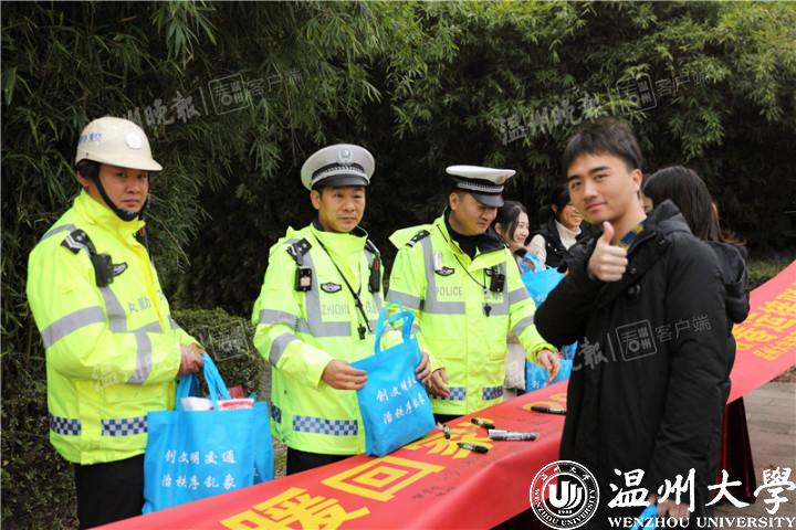 出发现场,温州市公安局交通管理局的交警在现场对每一辆校车和每一位驾驶员进行“发车体检”,重点检查车辆保险、年审、违章等情况,并对校车驾驶员的证件进行检查,依次进行酒精呼吸测试,确保春运护送的校车、驾驶员状态良好。同时,交警部门在发车处设立了交通安全宣传站点,针对大学生出行特点,通过展板海报、扫码互动、签字承诺和现场讲解电动车交通事故案例以及乘坐“黑车”“改装车”的安全隐患等方式将“平安锦囊”送至每个学生手中。“平安锦囊”里不仅有春节福、春联,还有电动车出行安全手册,为学生们送上新春祝福的同时,也在提醒他们返乡路上遵守交通法律法规,带着平安回家过年。