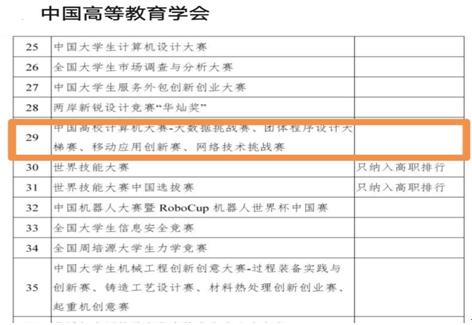 据悉,全国普通高校学科竞赛排行榜是中国高等教育学会“高校竞赛评估与管理体系研究”专家工作组研究成果,也是我国第一个专注高校创新人才培养成果的排行榜。该排行榜依据权威性、影响力和国际性原则每年遴选若干全国大学生竞赛项目入榜,从获奖贡献、组织贡献和研究贡献三个维度分别对全国普通本科院校和高职院校的学科竞赛竞争力进行排行。