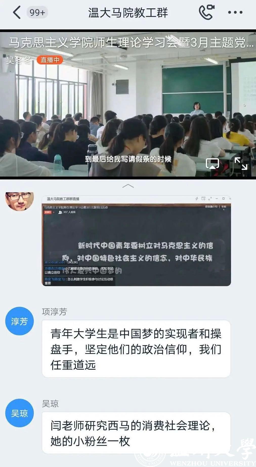 香蕉视频 马克思主义学院组织全体师生通过钉钉直播共同观看由教育部社科司指导,中教华影全国校园电影院线拍摄制作的纪录电影《一堂思政课》。该电影纪录一堂党的创新理论思政课、一堂回归经典思政课、一堂爱国主义教育思政课、一堂“强国有我”中学思政课、一堂生活思政课、一堂电影思政课、一堂“走出去”思政课、一堂思政大课,以娓娓道来的故事讲述,用影像化方式呈现了思政课坚持不懈用习近平新时代中国特色社会主义思想铸魂育人的深刻意义,多维度展示了思政课教学质量的全面提升和思政课老师的风采,在我院师生中引起热烈反响。