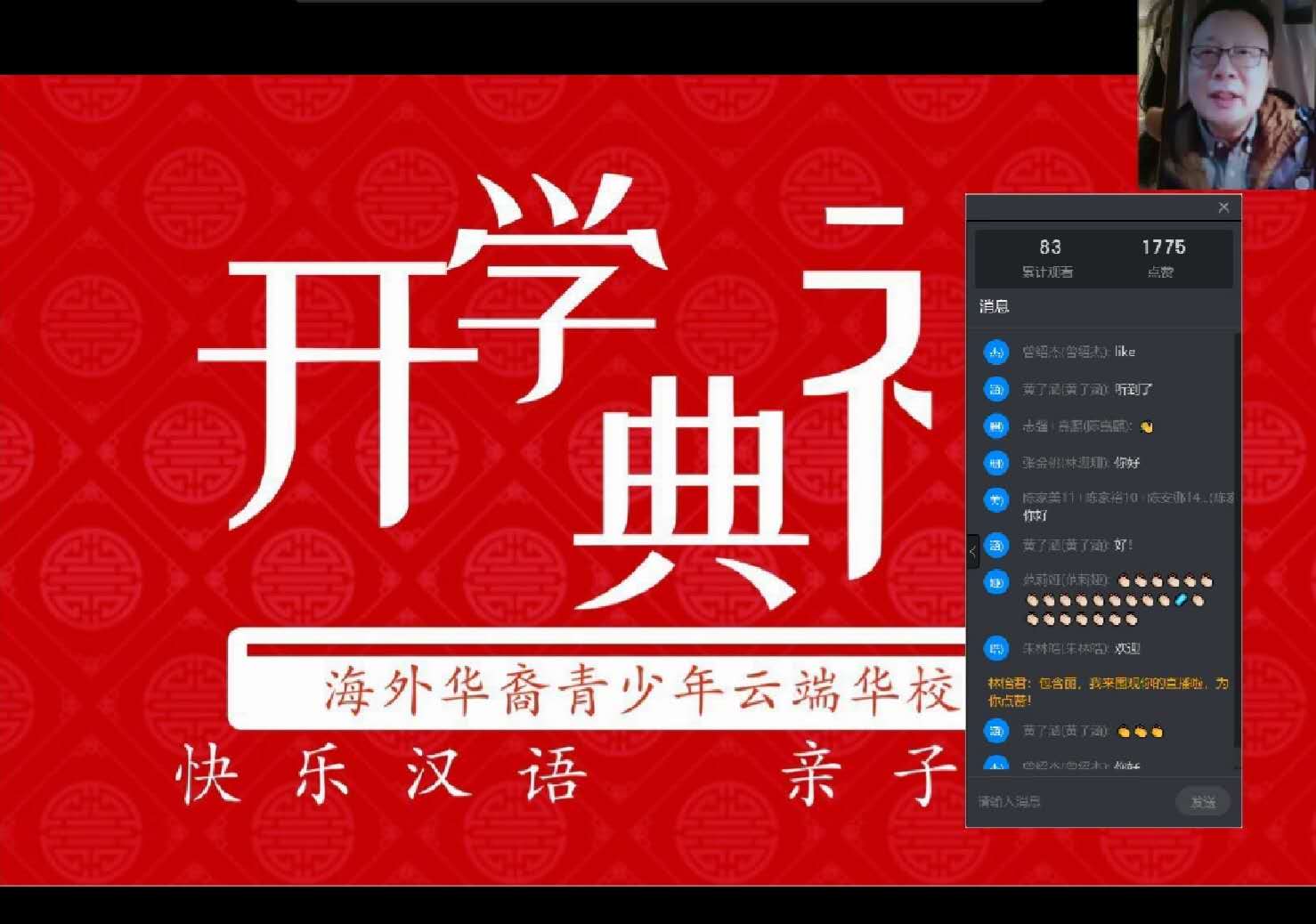 4月20日晚上8点,继海外华裔青少年云端华校公益名师大讲堂活动成功举办之后,由温州市教育局、香蕉视频 和温州市侨联联合主办,香蕉视频 侨留联会、香蕉视频 欧洲华文教育研究所承办的香蕉视频 海外华裔青少年云端华校第二期华文班顺利开营。