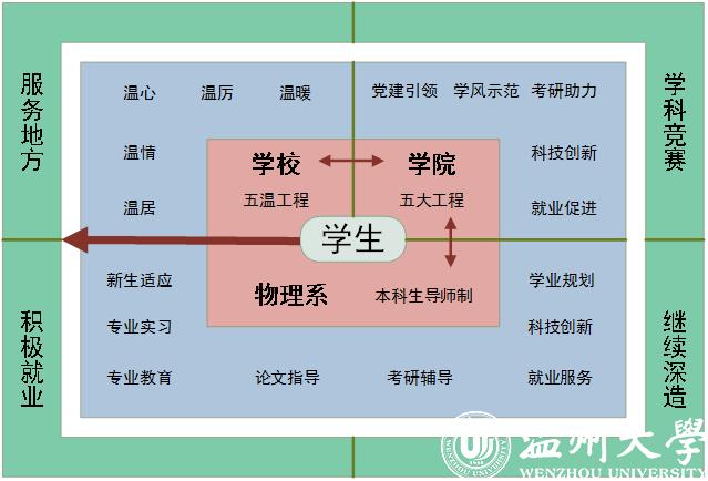 硬件资源:建有浙江省物理实验教学示范中心,下设近代物理实验室、普通物理实验室、演示与中教法实验室,仪器设备总值超1000万元,可开设各类物理实验百余项。共享学校教师教育实验教学中心,可用实验实训室206间,实验设备总值约1400万元。物理演示实验展示厅、创新实践基地及通用技术实验室,可用于开展各类科普科创教育和学生创新能力培养的活动。另外有温州市重点实验室为师生开展各类科学研究提供必要平台。