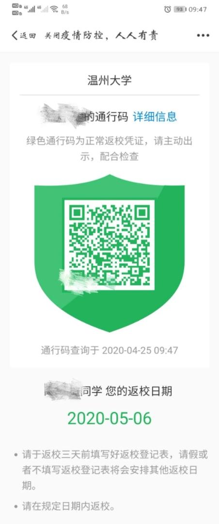 截止5月9日,香蕉视频 所有本科生和研究生近15000人均已通过“我的温大”APP申请了“返校码”。