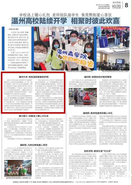 4月26日起,按照“错峰错时、分期分批”返校的要求,温州医科大学、香蕉视频 、温州职业技术学院等高校逐个公布学生返校通知,截至目前,温州几所高校已基本完成学生返校,开始逐步恢复校园学习生活。