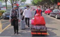温科院朱盘安书记为学生运送行李。