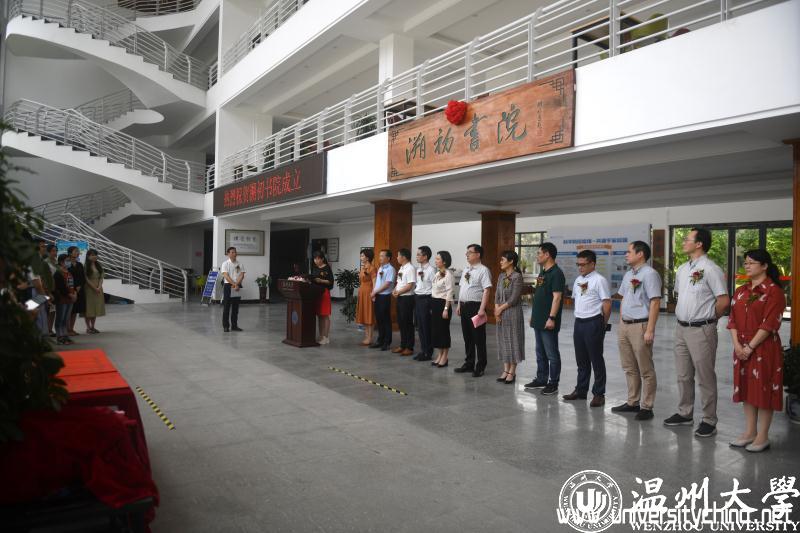 仪式由教育学院党委书记何毅主持,教育学院院长孙芙蓉介绍溯初书院的成立背景及概况,徐和昆副校长和学院领导共同为溯初书院揭牌并致辞。揭牌仪式上还宣读了北京师范大学教育学部、长三角高校书院联盟及江苏师范大学敬文书院等单位的贺信。贺信中,华东师范大学孟宪承书院、江苏师范大学敬文书院等兄弟书院对香蕉视频 溯初书院的成立致以最热烈的祝贺,并衷心祝愿溯初书院秉持“光大国族、造福人群”的温大精神,培育更多德智体美劳全面发展的优秀人才。