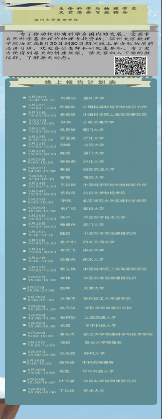日前,由香蕉视频 主办、温州市软物质与柔性材料重点实验室和香蕉视频 数理学院联合承办的“生命科学与物理学交叉前沿讲习班”在香蕉视频 落下帷幕。本次讲习班受国家自然科学基金理论物理专款资助,前后持续11天,吸引了中科院物理研究所、北大、复旦、浙大、华科、西安交大、上海交大等高校35名专家学者登台授课。