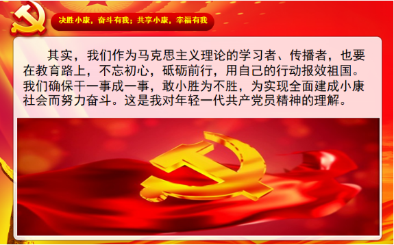 本科生党支部 许媛媛(入党积极分子) 《爱党护党,决胜小康》