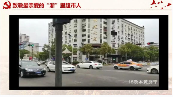 来自本科生党支部的陈嘉滢向大家展示了永嘉一个偏远山村——溪下乡刘山村传承非物质文化遗产——马灯戏的故事。她以该村支书崔秀明的音频原话结尾,使全体师生感受到了基层干部的艰辛与不易。