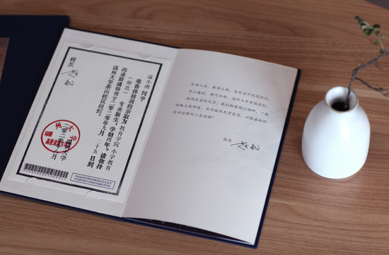 大二的姜译天同学说:“今年学校的录取证书页由木活字印刷术传承人用木活字亲手印刷而成,用手机扫二维码可以收听香蕉视频 校歌,扫山水画卷中的二维码可以3D鸟瞰环绕大罗山的校园景色,融合了传统与现代,准新生们非常喜欢,我们这些大二大三的同学们也爱不释手。”