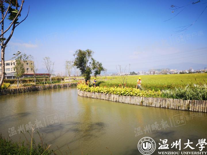 记者在埭下河沿岸看到,河流两头设置了拦截坝,河面波光粼粼,岸边设有一整排的松木桩,边坡上种满了美人蕉等花卉植物。“河边就是大片农田,初期雨水、农药化肥、生活污水以前都直通入河,造成水中的氨、氮、磷等指标严重超标。今年4月,温大技术团队开始介入治理。”温大生命与环境科学学院副院长、水污染治理研究中心副主任郑向勇告诉记者,拦截坝让原河道形成前置库生态塘,能够对面源径流及日常农田排水进行拦截,生态塘系统的自净功能则可以实现对氮磷的吸收净化;河岸边设置松木桩,种植湿生植物、挺水植物,是为了形成生态堤岸,拦截和净化入河污染源中的颗粒物和氮磷等。