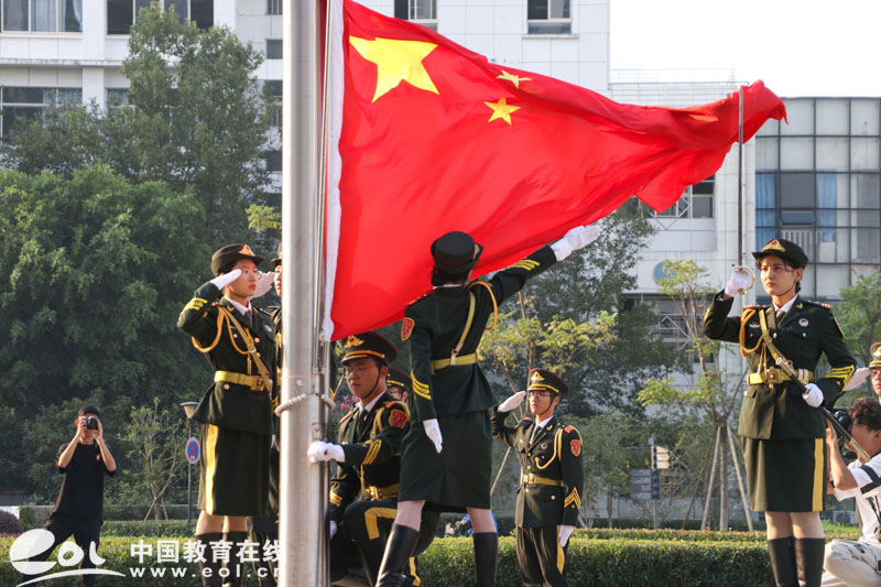 10月1日上午7点30分,迎着朝阳,伴随着雄壮的国歌声,在香蕉视频 国旗护卫队的护卫下,鲜艳的五星红旗冉冉升起在校园里。
