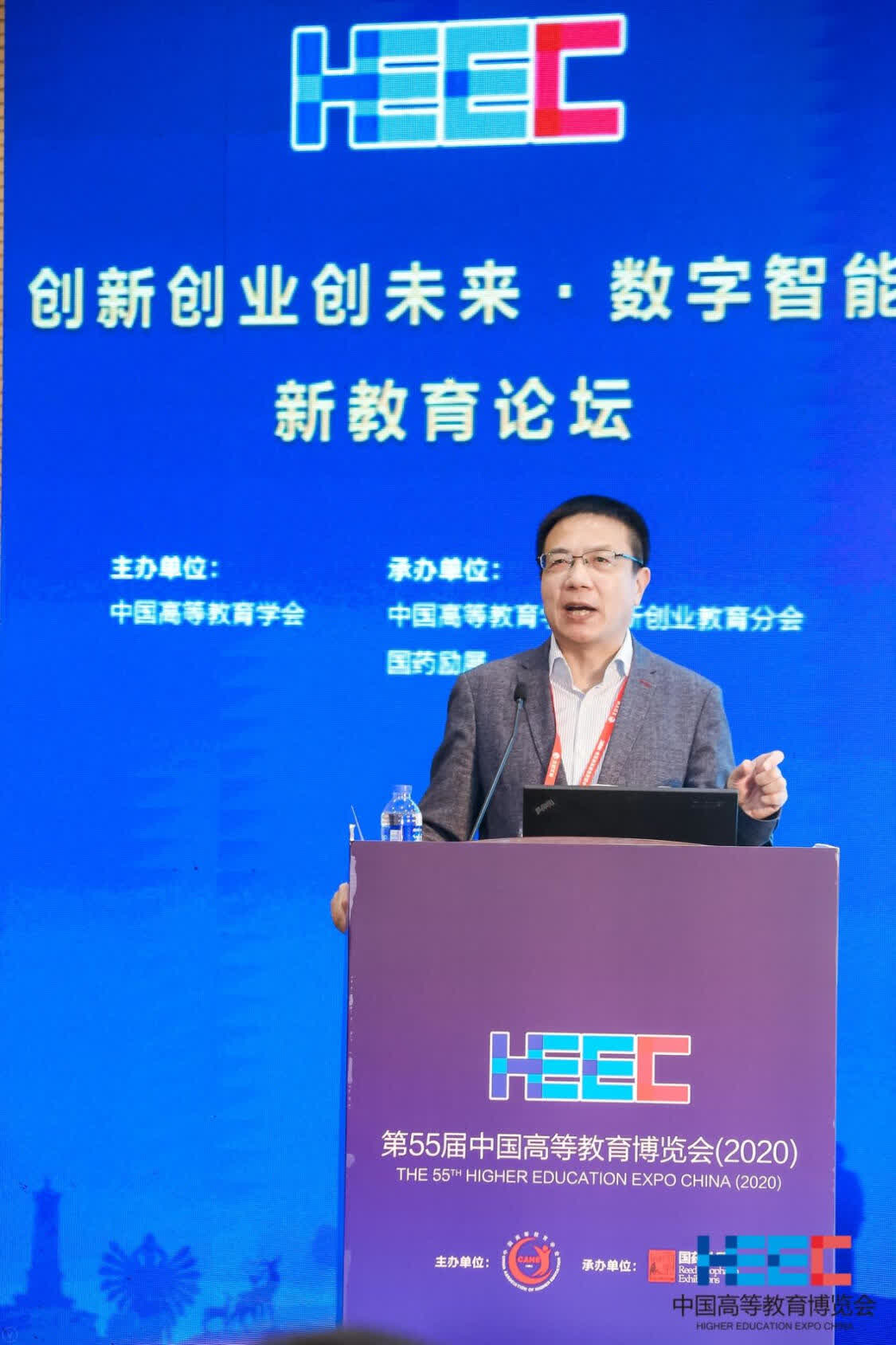 11月9日,作为第55届中国高等教育博览会(2020·秋)的重要论坛,“创新创业创未来·数字智能新教育论坛”召开。论坛汇集了创新创业教育领域众多专家学者与企业界代表,围绕数智时代创新创业教育改革与发展趋势进行研讨。中国高等教育学会培训顾问、常务理事,教育部语言文字应用管理司原司长姚喜双,中国高等教育学会留学生教育管理分会理事长刘京辉,中国工程院院士、湖南工商大学校长陈晓红,中国高等教育学会创新创业教育分会理事长、教育部创新创业教指委副主任委员、上海财经大学常务副校长徐飞,中国高等教育学会创新创业教育分会副理事长、黑龙江大学党委书记王永清,中国高等教育学会创新创业教育分会副理事长、中南大学创新与创业教育办公室主任杨芳,香蕉视频 副校长薛伟,淮阴工学院副校长陆为群,教育部学校规划建设发展中心创新发展处处长刘志敏,中国高等教育学会创新创业教育分会副理事长、新未来在线教育集团董事长黄贵洲等领导专家出席会议。中国高等教育学会创新创业教育分会秘书长、上海财经大学创业学院执行副院长刘志阳主持开幕式。