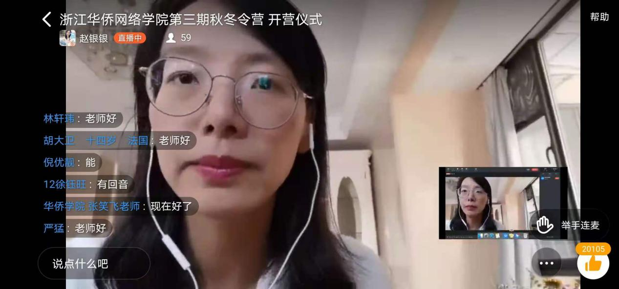 开营仪式上,包含丽对参加本次秋冬令营的各位海外参营单位负责人、老师、家长、新老营员们表示诚挚的问候与感谢,并简单回顾了过去两期秋冬令营的办学特色与办学成果。她指出,海外华裔青少年的华文学习效果与家庭环境以及家长陪伴密切相关,浙江华侨网络学院特别量身定制了“教师、学生、家长”三位一体的华文教育体系,特别开办了家长学校,开设家庭教育亲子讲坛,还将邀请国内优秀的家庭教育讲师为秋冬令营的家长们授课,希望父母能够陪伴孩子一起学习,让孩子在良好的家庭氛围中学习中文、学习中国文化。