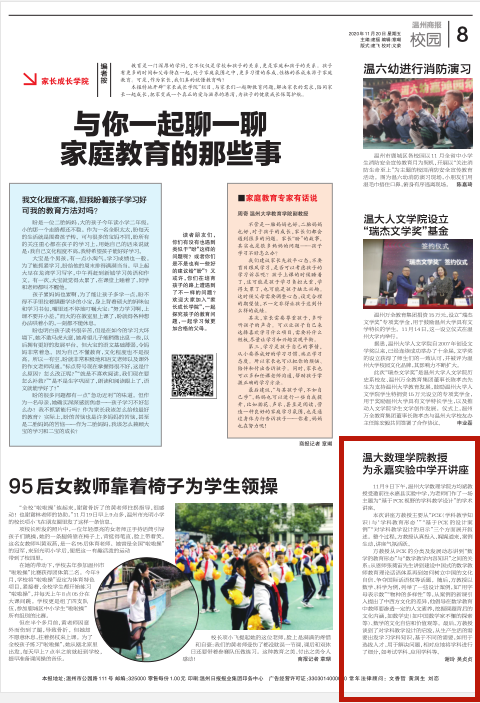 11月9日下午,香蕉视频 数理学院方均斌教授受邀前往永嘉县实验中学,为老师们作了一场主题为“基于PCK视野的学科教学设计”的学术讲座。