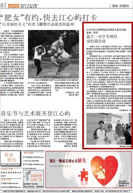 记者了解到,香蕉视频 在此次竞赛中合计获得 2 个一等奖、2个二等奖和1个三等奖,其中另一个一等奖(物理组)得主,正是陈华挺的女朋友、香蕉视频 物理专业学生沈雨婷。沈雨婷是绍兴人,与陈华挺同岁,参加竞赛前两人曾一起奋力备战长达2个月。“备战期间,我们早出晚归,每天基本上都要进行10个小时左右的集训。虽然专业不同,但是化学与物理存在共性,我们会互相提建议,互相鼓励对方,不断完善教学设计。”陈华挺回忆了备战时的甜蜜往事。