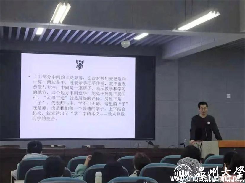 冯用军教授满怀深情的向同学们分享了他以德求学的经历,提到母校的校训深深影响着他对待学术的态度,从踏入学术之门的“有志、有识、有恒、有位”,到耕耘学术之路的“自强不息、止于至善”,再到传授学术时的“厚德、积学、励志、敦行”,一路走来不同学校的校训像不同性格的智者培养了冯教授踏实的研学品格,也使他确立了为人师表应以德治学的观念,正所谓“千教万教,教人求真,千学万学,学做真人”(陶行知)。