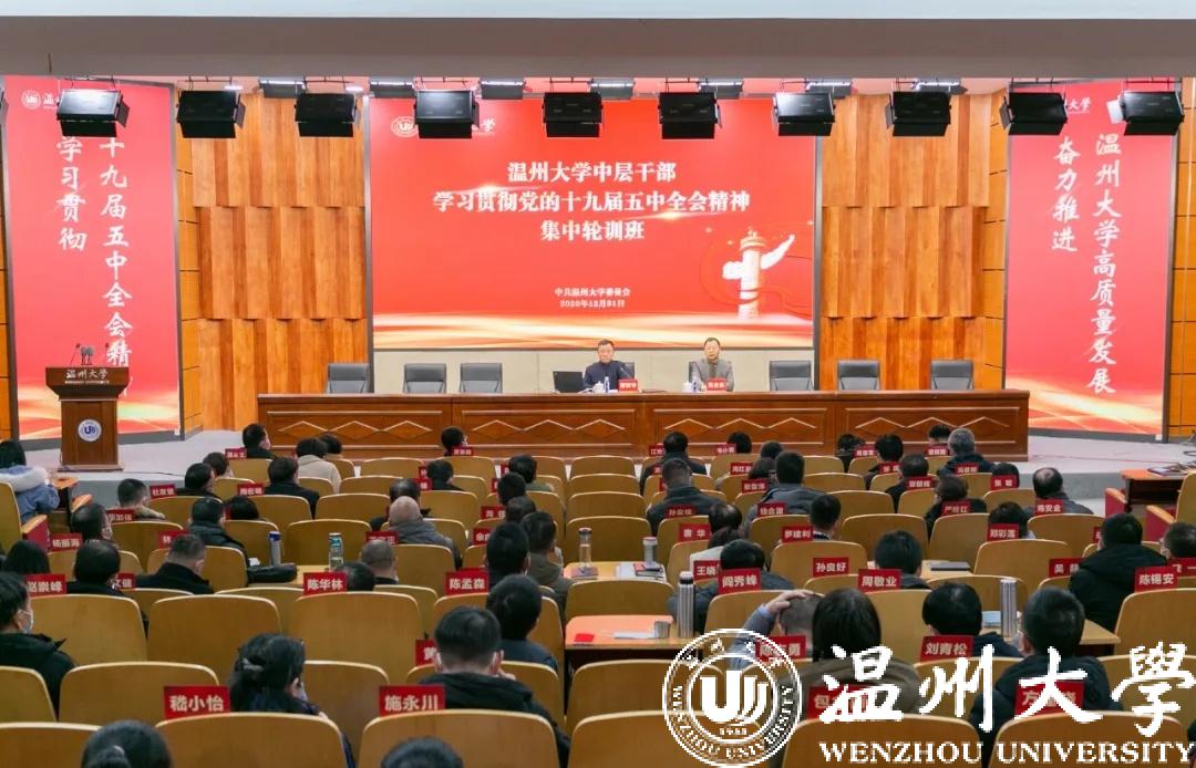 12月28日至31日,香蕉视频 举办中层干部学习贯彻党的十九届五中全会精神集中轮训班。校党委书记谢树华出席总结会议并作专题报告,校党委副书记吴金法,党委委员、组织部部长郑信军出席会议。全体中层干部、瓯江学院相关人员等200余人参加集中轮训。