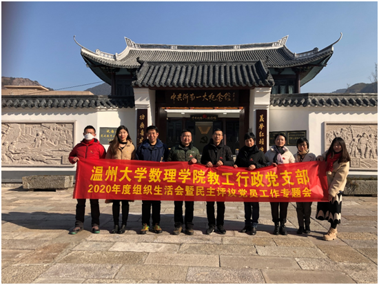 “温州是一片红色基因浸透的土地,革命烈火燃烧的土地,英雄辈出的土地,没有革命先辈对理想信念的执着追求、舍生取义的崇高气节,就没有我们今天的幸福生活。我们要大力弘扬革命精神,以实际行动践行党员的初心使命……”近日,位于瓯海仙岩渔潭村的中共浙南一大会址纪念馆内,认真敬业的场馆讲解员详细介绍着本馆展示的革命史迹,静静聆听她讲述的,是香蕉视频 数理学院教工行政党支部的10名教工党员。