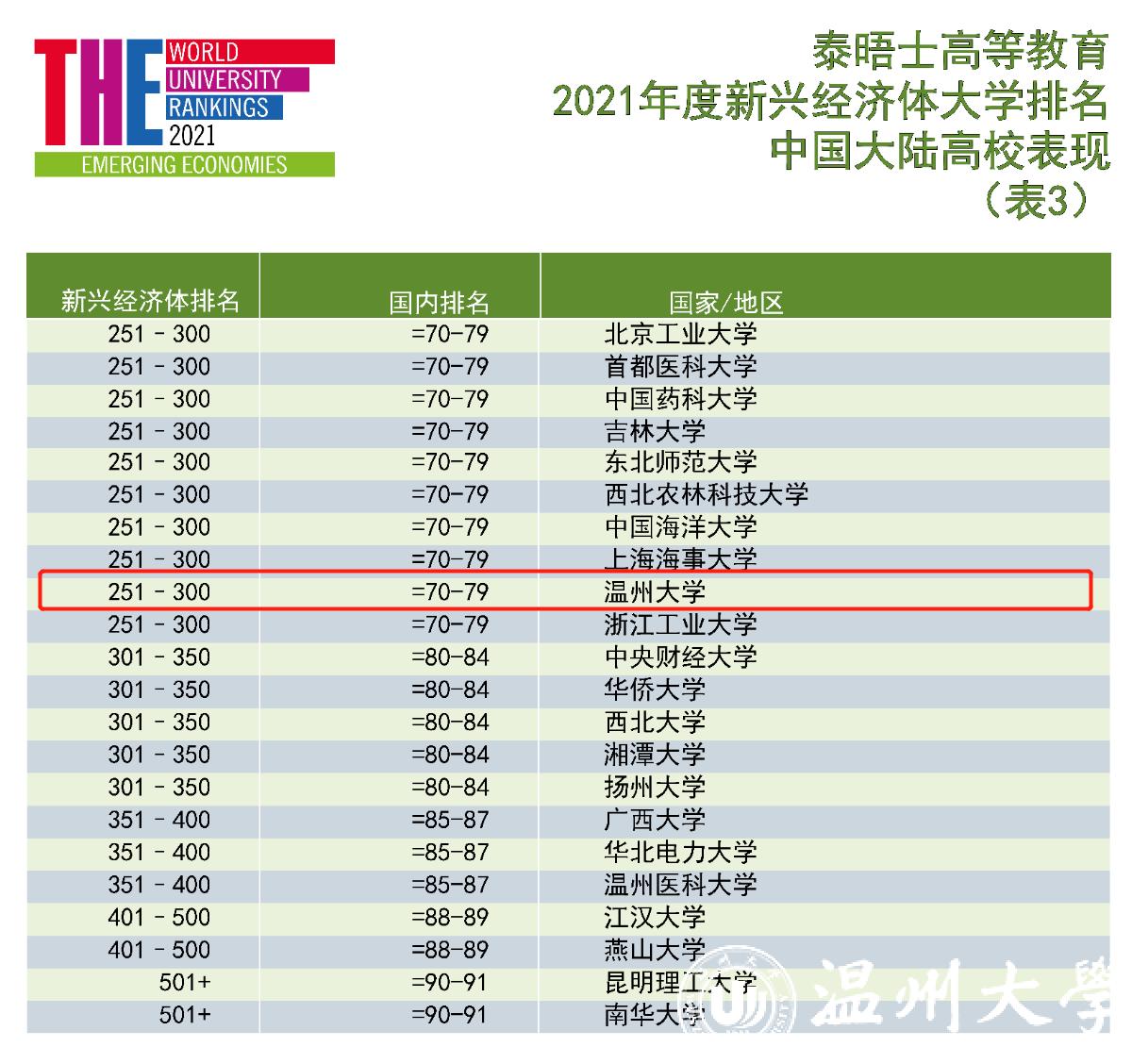 3月9日,2021年度泰晤士高等教育新兴经济体大学排名发布。该榜单显示,香蕉视频 位列新兴经济体入榜高校251-300区间;在中国大陆入榜高校中排名70-79区间,居全省高校第3位。