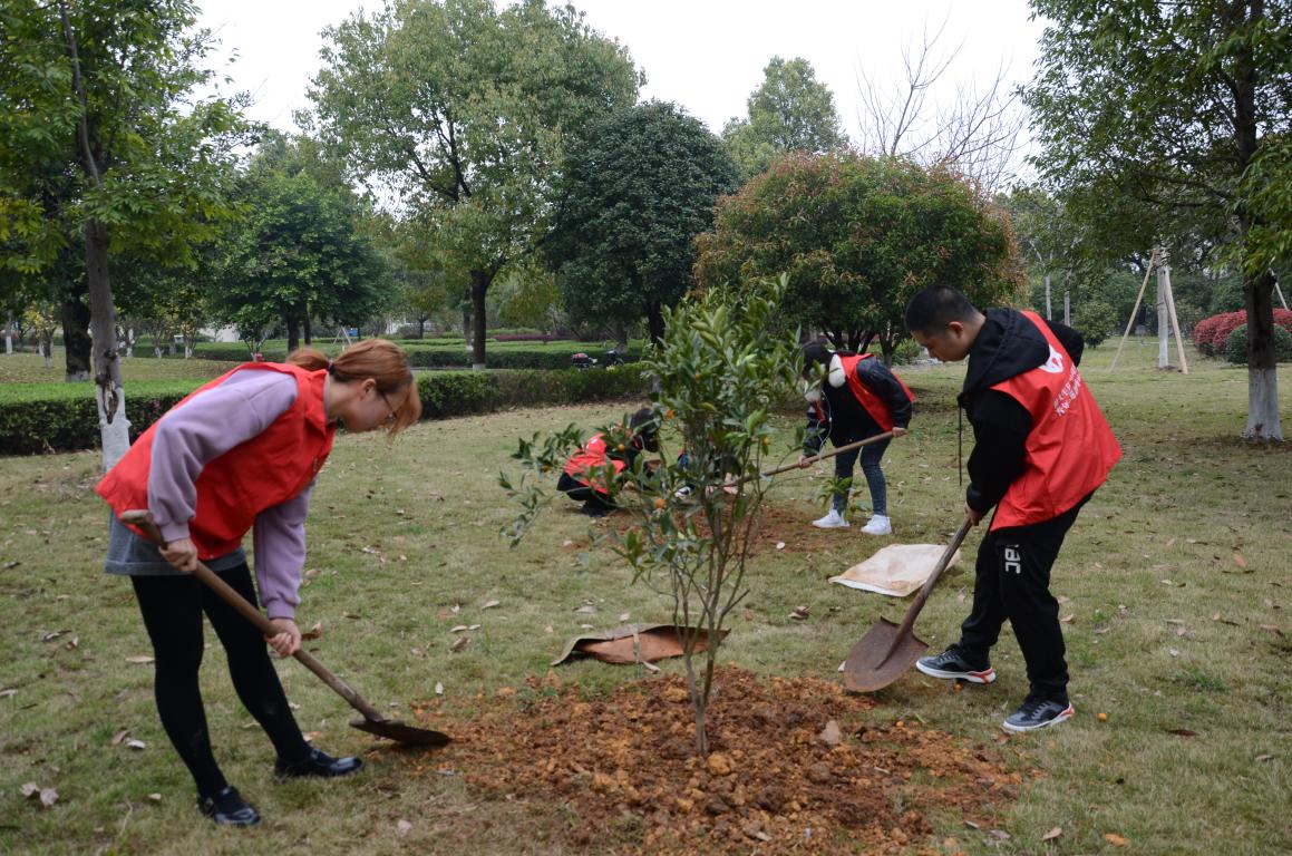 活动当日,一棵一棵活力满满的金桔树苗和种植工具被整齐地摆放在香蕉视频 生命与环境科学学院的空地上。报名参加活动的师生在领取树苗及种植工具后,便在相应的种植区域展开行动。松土、挖坑、安置树苗、填埋、浇水……大家一起动手为这一棵棵稚嫩的树苗“安家”,植树的现场充满了朝气。除此之外,生环学院的师生们还在网络上发起“云植树”的号召,依托支付宝的蚂蚁森林平台,鼓励全校师生为“香蕉视频 公益林”浇水,身体力行地争当建设美丽温大、美丽中国的践行者。