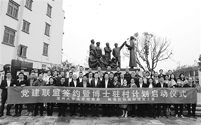 3月31日,香蕉视频 法学院党委与瓯海区仙岩街道党工委党建联盟签约仪式暨博士驻村计划启动仪式在浙南一大会址举行。温大法学院宣布成立17支由党员博士教师、硕士研究生和本科生组成的师生团队,分别对口进驻仙岩街道的17个自然村,共同开展调研课题研究,为提升区域治理水平、振兴乡村发展提供“温大法学院智慧”。