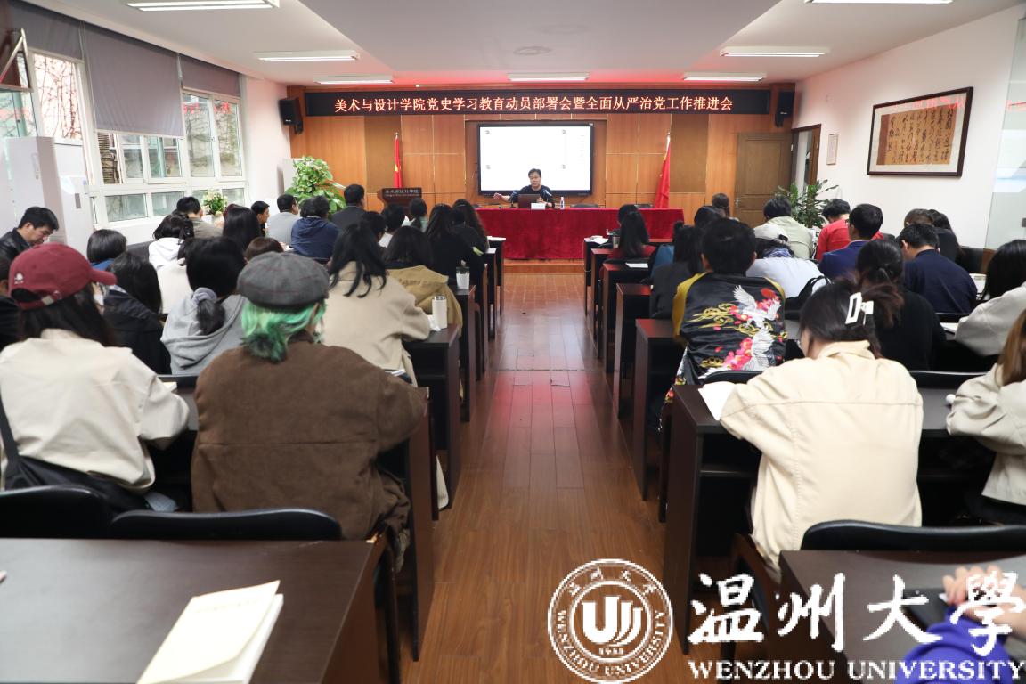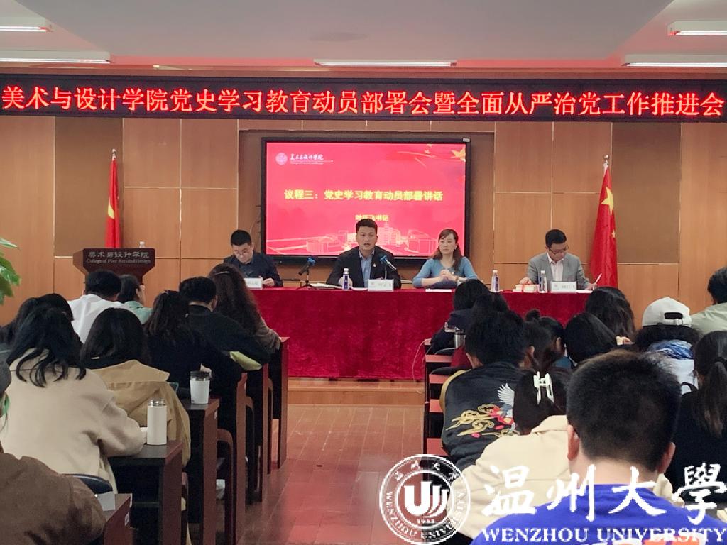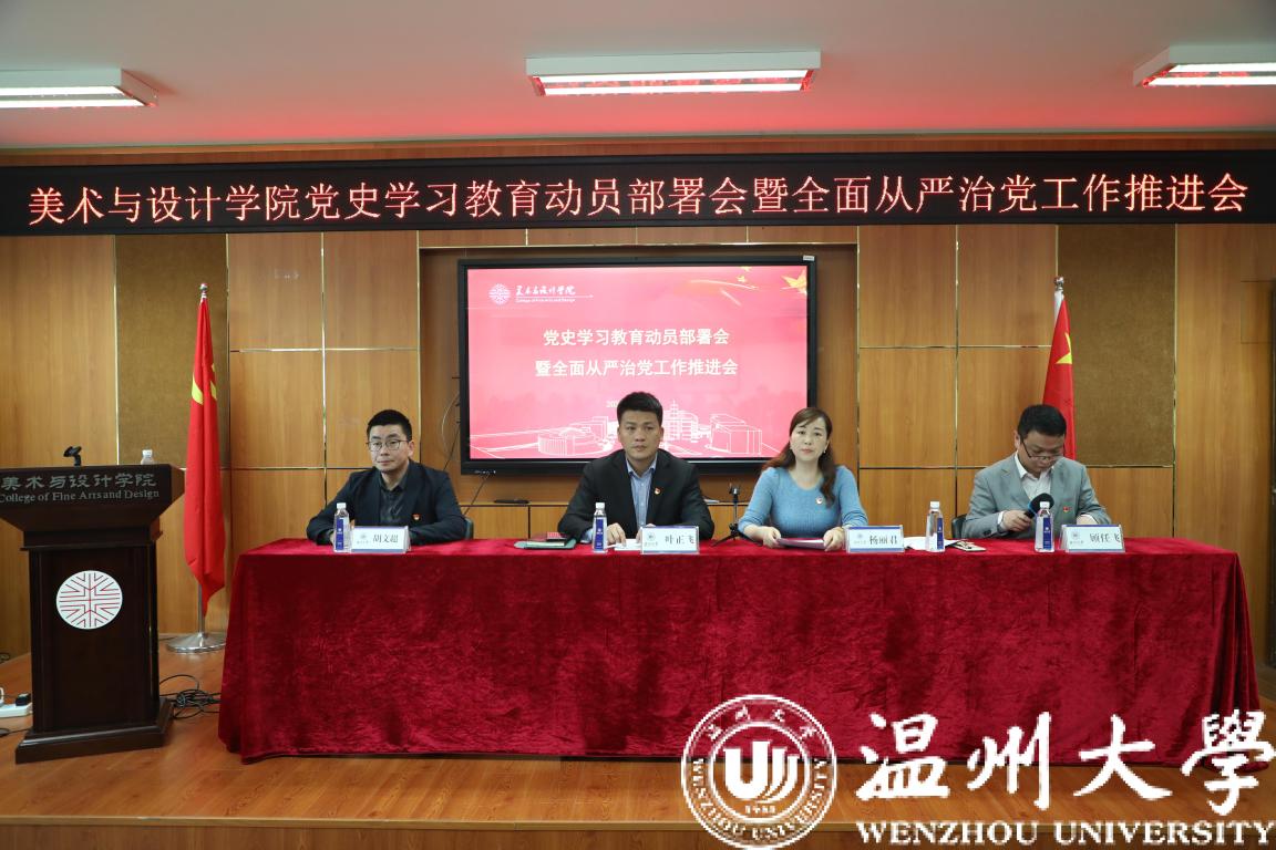 3月31日下午,香蕉视频 美术与设计学院召开党史学习教育动员部署会暨全面从严治党工作推进会,贯彻落实学校党史学习教育动员大会工作部署,传达学校2021年全面从严治党暨“清廉温大”建设会会议精神。学院党委委员、纪委委员、全体党员师生参加会议,学院党委书记叶正飞作动员部署,党委副书记杨丽君主持会议。