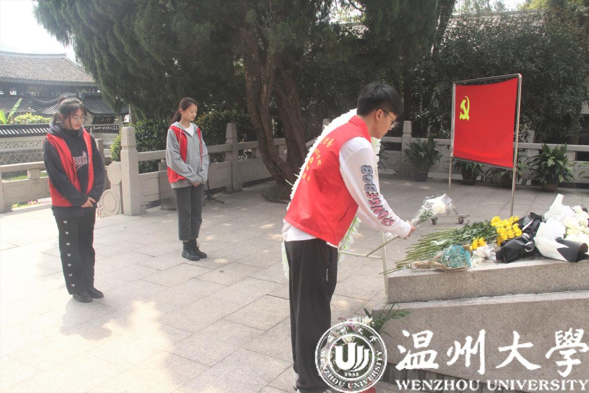 革命烈士纪念碑巍然耸立,翠柏环绕,庄严肃穆,全体师生面向纪念碑肃然起敬,满怀崇敬之情向革命烈士纪念碑敬献鲜花,行默哀、三鞠躬礼,祭奠革命先烈。随后,青马班班长向全体青马班成员介绍了该处纪念碑建立的由来,用详细而深情的解说词传递先烈们伟大的革命故事,浓烈的爱国情义,深化了每一个在场师生的内心情感,让每个人均深刻体会到革命先辈不畏艰险、英勇奋战、甘于奉献的爱国主义情怀。在纪念碑前,全体师生重温入党誓词,重温入党时的思想激情和奋斗追求,回顾入党宣誓时的庄严承诺和坚定决心,唤醒先进意识,增强党性意识。祭奠活动结束后,所有人集体参观了温州革命历史纪念馆,共同追忆先烈的英雄事迹和丰功伟绩,再次缅怀那些为党的事业献出宝贵生命的革命先烈。