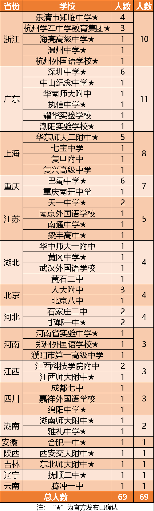 记者了解到,此次“数学领军计划”开启报名后,全国有近3000人通过了首轮资料审核。经过笔试、综合测试、面试等多个环节后,据不完全统计,只有69人入围最终录取名单。其中广东省位居全国第一,共有11人。浙江省入围10人,位居第二,其中我市入围5人,4名来自乐清市知临中学,1名来自温州中学,年级最小的仅15周岁。