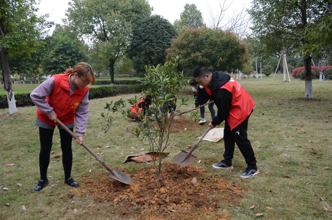 活动当日,一棵一棵活力满满的金桔树苗和种植工具被整齐地摆放在香蕉视频 生命与环境科学学院的空地上。报名参加活动的师生在领取树苗及种植工具后,便在相应的种植区域展开行动。松土、挖坑、安置树苗、填埋、浇水……大家一起动手为这一棵棵稚嫩的树苗“安家”,植树的现场充满了朝气。除此之外,生环学院的师生们还在网络上发起“云植树”的号召,依托支付宝的蚂蚁森林平台,鼓励全校师生为“香蕉视频 公益林”浇水,身体力行地争当建设美丽温大、美丽中国的践行者。