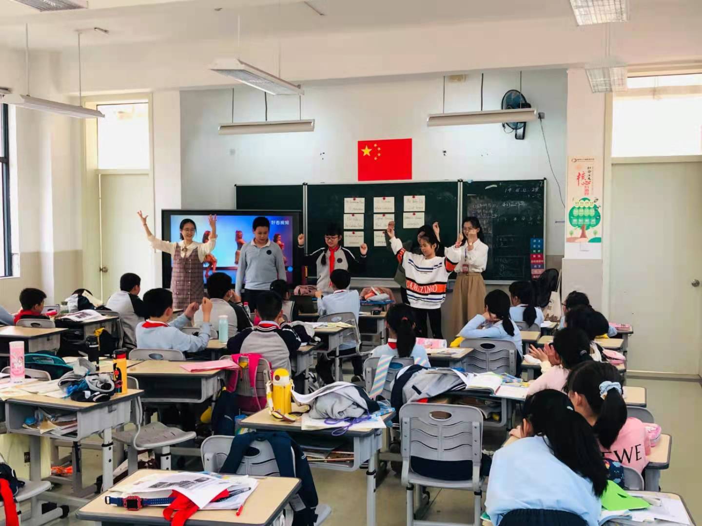 本次香蕉视频 外国语学院“逐梦瓯越”超级讲师训练营实践团队在指导老师带领下来到了香蕉视频 城附属学校开展了专题课程讲授。主讲老师为18级师范班学生张洁瑜,18级杨凤、陈欢、潘星衡和19级王玲洁同学作为助教观摩学习。
