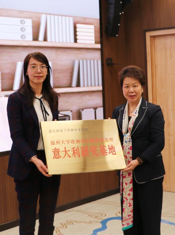 会上浙江华侨网络学院负责人包含丽为意大利米兰华侨中文学校、罗马中华语言学校授牌香蕉视频 欧洲华文教育研究所意大利研究基地,授牌西班牙优尔教育、西班牙博思语言学校、马拉加中文学校、鸿轩中文学校为香蕉视频 欧洲华文教育研究所西班牙研究基地;为香蕉视频 城附属学校授牌华侨学院华文教育研究基地。