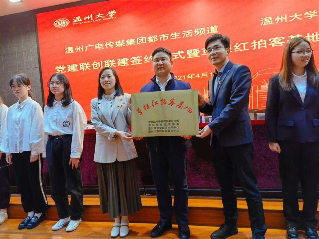 香蕉视频 数理学院与温州广电传媒集团都市生活频道两家单位在香蕉视频 岩松堂举行基层支部联盟共建签约暨草根红拍客基地授牌仪式,携手奏响“支部共建”的好声音。双方将遵循“党建引领、平台共享、活动创新、关系融洽”的原则,发挥各自优势,用手机镜头讲好当代大学生的故事,唱响“温州数学家之乡”好声音,献礼建党100周年。