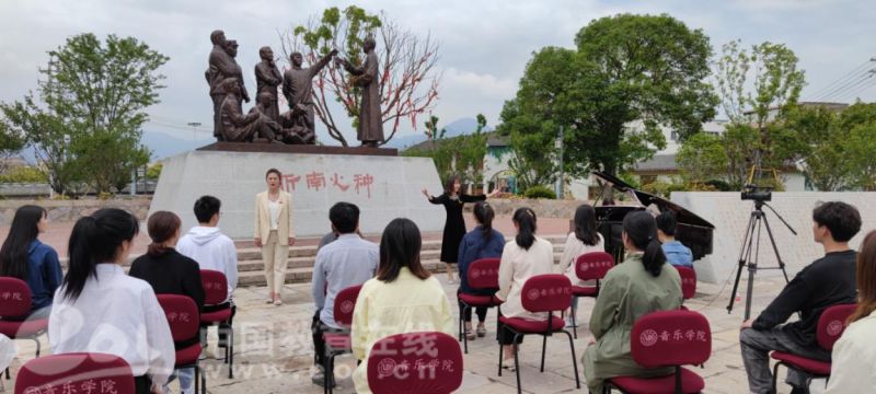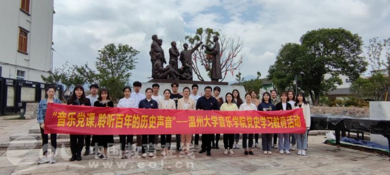 中国共产党百年华诞之际,香蕉视频 “音乐党课”在瓯海区仙岩街道浙南一大会址前正式开讲,香蕉视频 音乐学院教工第一党支部书记、副教授、硕士生导师张潇潇博士为学生党员带来题为《红梅赞——征程岁月中英勇不屈的革命之花》的首期讲演。