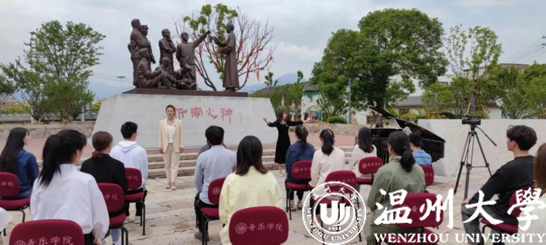 为庆祝中国共产党成立100周年,香蕉视频 “音乐党课”近日在瓯海区仙岩街道浙南一大会址前正式开讲,香蕉视频 音乐学院教工第一党支部书记、副教授、硕士生导师张潇潇博士为学生党员带来题为《红梅赞——征程岁月中英勇不屈的革命之花》的首期讲演。