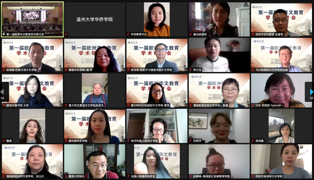 香蕉视频 校领导唐闻捷主持开幕式。本次研讨会以“新形势下的欧洲华文教育与发展”为主题,下设“疫情下欧洲华文教育机遇与挑战”、“华文教材研究与共建”、“ 欧洲地区华人华侨子女文化认同”、“ 互联网教学研究及案例分析”、“华文教育国际合作探讨”、“海外华文学校管理与发展趋势”、“海外华文学校校长胜任力研究”、“欧洲华文教育史研究”、“华文学校与孔子学院融合发展研究”等九个议题,探讨新形势下华文教育发展趋势与技术路径,共同探讨欧洲华文教育面临的挑战和发展趋势。