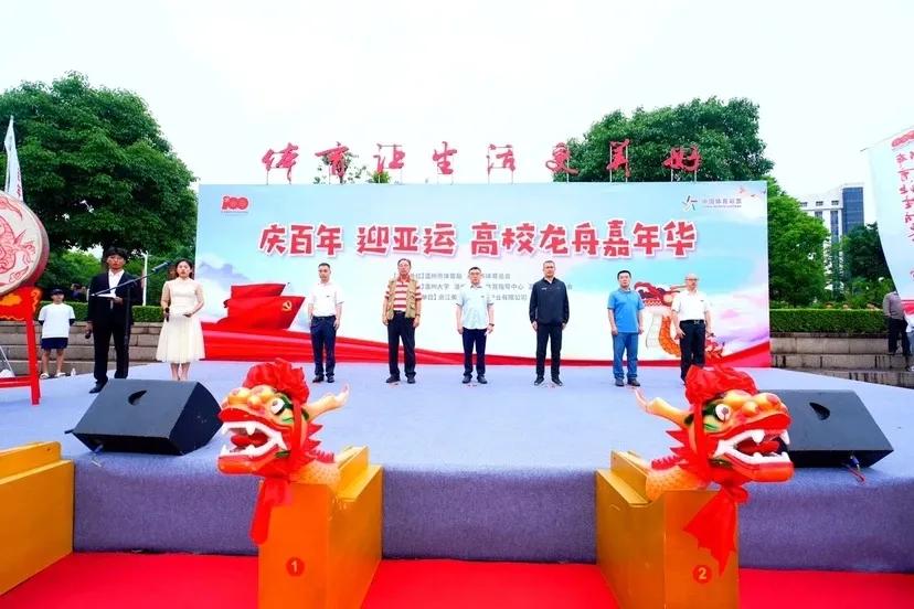随后,由市体育局局长张志宏宣布活动启动,香蕉视频 副校长薛伟和浙江省龙舟协会主席王成云分别击鼓、鸣锣,比赛正式开始。