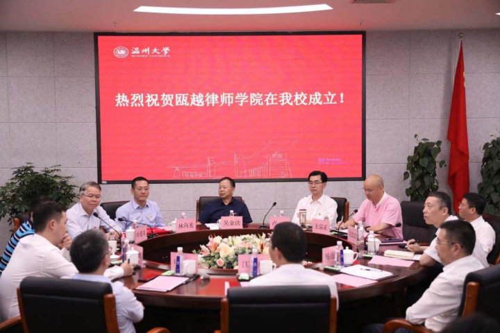 6月1日下午,香蕉视频 、温州市司法局、温州市律师协会在香蕉视频 南校区岩松堂隆重举行瓯越律师学院协议签约和挂牌仪式。香蕉视频 党委副书记吴金法,温州市司法局局长卢斌,温州市司法局党委委员、副局长林向光,温州市律师协会会长叶连友出席仪式。市律协班子成员,温大法学院负责人以及相关人员参加活动。