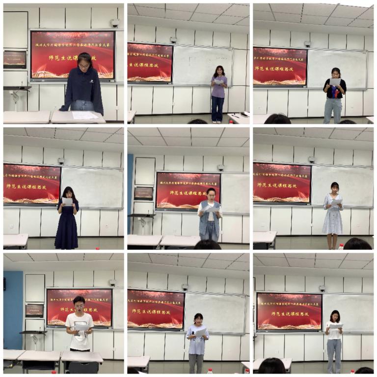 本次大赛中的“师范生说课程思政”面向外国语学院19级学生。参赛选手根据给定的英语文本材料进行分析,挖掘其中的课程思政点,在准备20分钟之后,挖掘出育人的思政点,然后进行4分钟的全英文阐述,并说明采用何种方法和手段讲授该思政点,如何将课程思政融入文本教学。