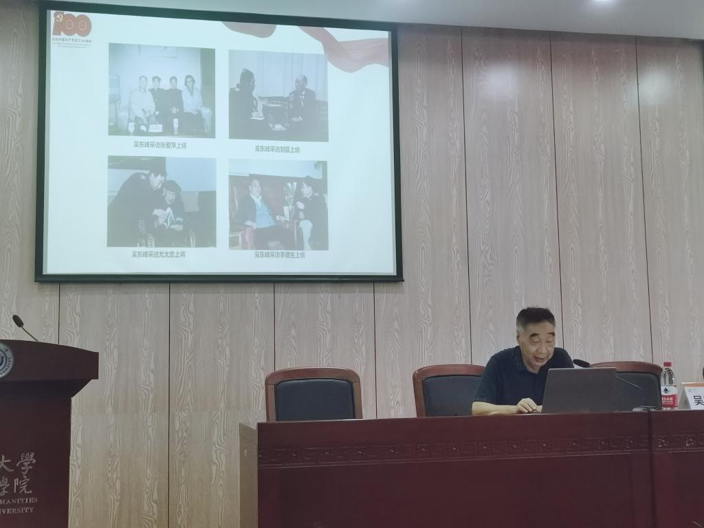 开国元帅是哪十位?《亮剑》中李云龙的原型是谁?三大战役是哪三个?6月16日下午,在香蕉视频 人文学院,温州著名军旅作家、广州新四军研究会常务副会长吴东峰用三个关于开国将军的提问作为开篇,开讲“他们是中华民族的脊梁骨——我釆访过的开国将军们”。温大人文学院各学生党支部党员等百余人现场聆听了本次别开生面的党史讲座。