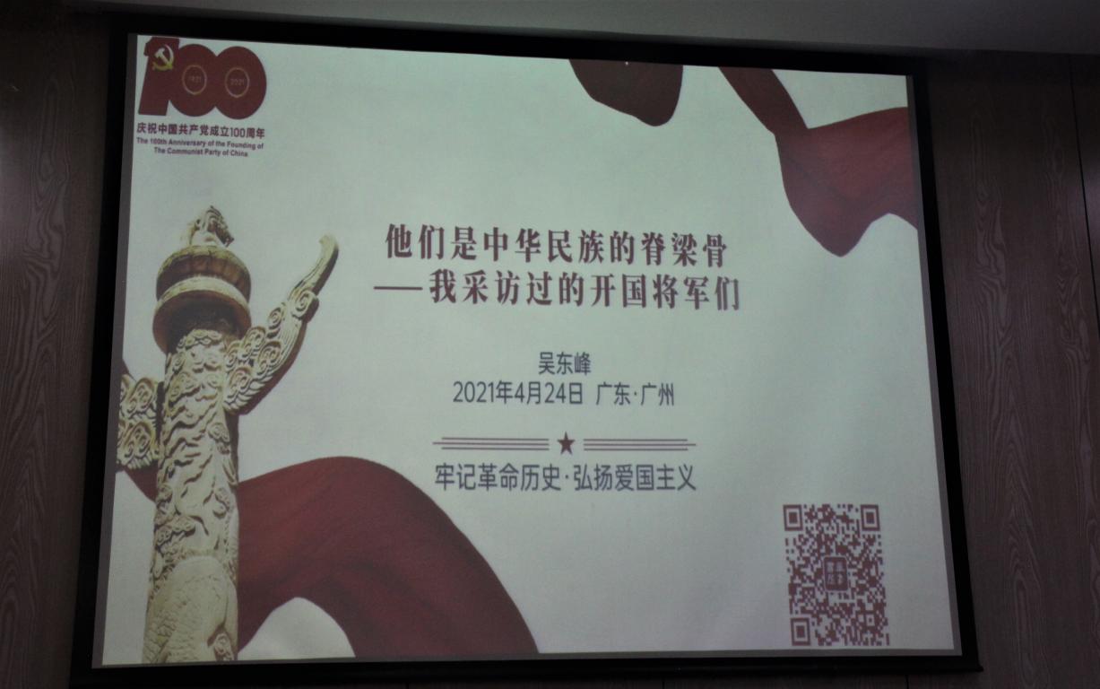 讲座上,吴东峰还以采访照片为引,讲述了自己采访张爱萍等多位开国将军时所发生的趣闻轶事。讲座末尾,吴东峰表达了对在场学生的期待和鼓励,讲座在热烈的掌声中圆满结束。“吴东峰先生创新性地从采访者的视角,以讲故事的形式生动描述了新中国的革命史和战争史,这种跳出刻板说教形式的党史教育,令人印象深刻、受益匪浅。”温大人文学院相关负责人表示,学院历来高度重视党史学习教育,希望同学们可以通过系列党史学习教育汲取革命先辈们的精神力量,传承宝贵的精神遗产,继续砥砺前行。