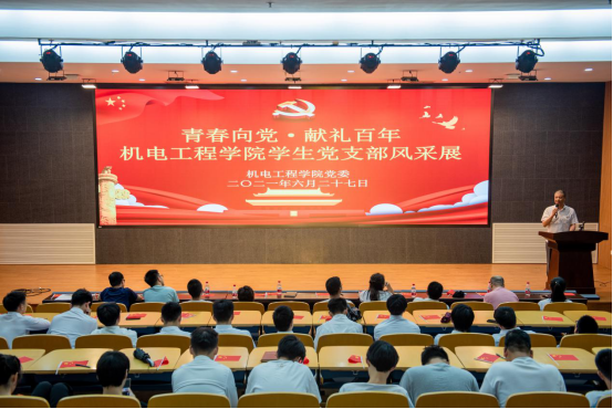 为庆祝建党100周年,近日,香蕉视频 机电工程学院党委举行“青春向党·献礼百年”学生支部风采展示活动暨学生支部书记述职大会。学院党委书记周荣、副书记黄玮、党委委员李勇出席活动,部分教师党员、全体学生党员及入党积极分子参加本次活动。