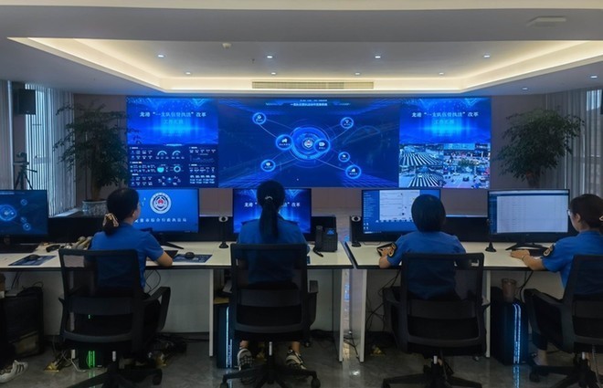 随着执法改革深入推进,综合执法也面临人少事多、信息不畅、跨部门数据调取难等问题。为了实现“执法人员少跑路,系统数据多跑路”,龙港市创立了“一支队伍管执法”协作支撑应用,集指挥、查询、协同、执法功能于一体。同时,还建成了数字化执法监管协同指挥体系,衔接“基层治理四平台”、12345 政务平台,通过数据归集、AI智能分析和流程监控等功能,对“人、事、物”三大要素精细化管理。