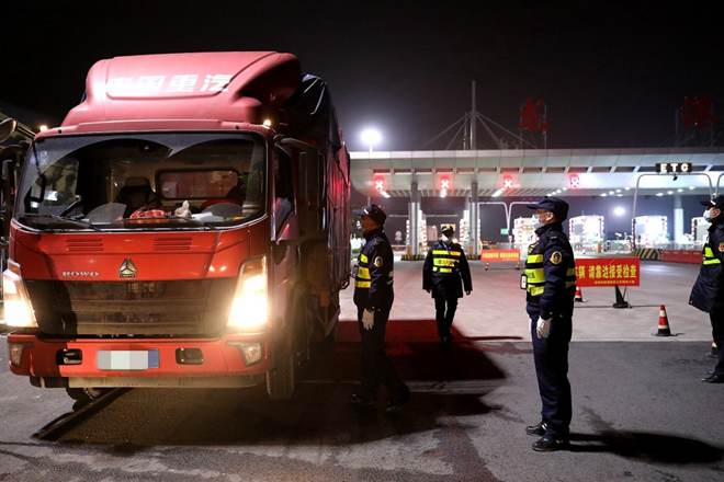 浙江龙港市综合行政执法局执法队员对货运车辆开展执法检查