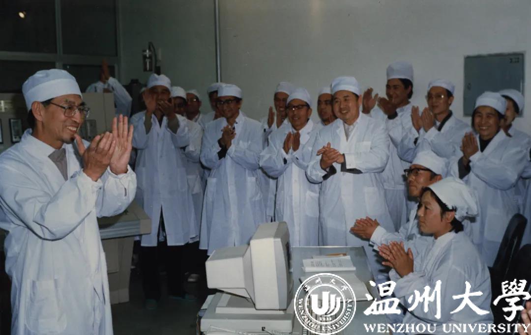 △ 1989年11月,核能所所长王大中(左一)宣布5兆瓦核供热反应堆启动运行成功
