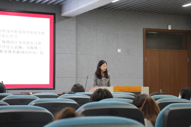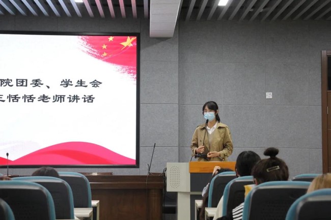 大会伊始,出席的全体成员一同起立,齐唱团歌。随后院团委、学生会指导老师王恬恬向全体团支书致以慰问,表示感谢。她指出,共青团是党的助手和后备军,团支书要明确自己的身份,要学会巧妙运用工具提高工作效率,做好上传下达工作,同时借助团支书的职务锻炼自己。王老师重点强调了团支书本身的榜样作用,号召团支书带好班级的头,做好班级的榜样。最后,她对全体团支书寄予殷切希望,希望每位团支书能成为老师和同学沟通的桥梁,并能及时反馈身边同学的意见建议,协助老师做好各项工作。