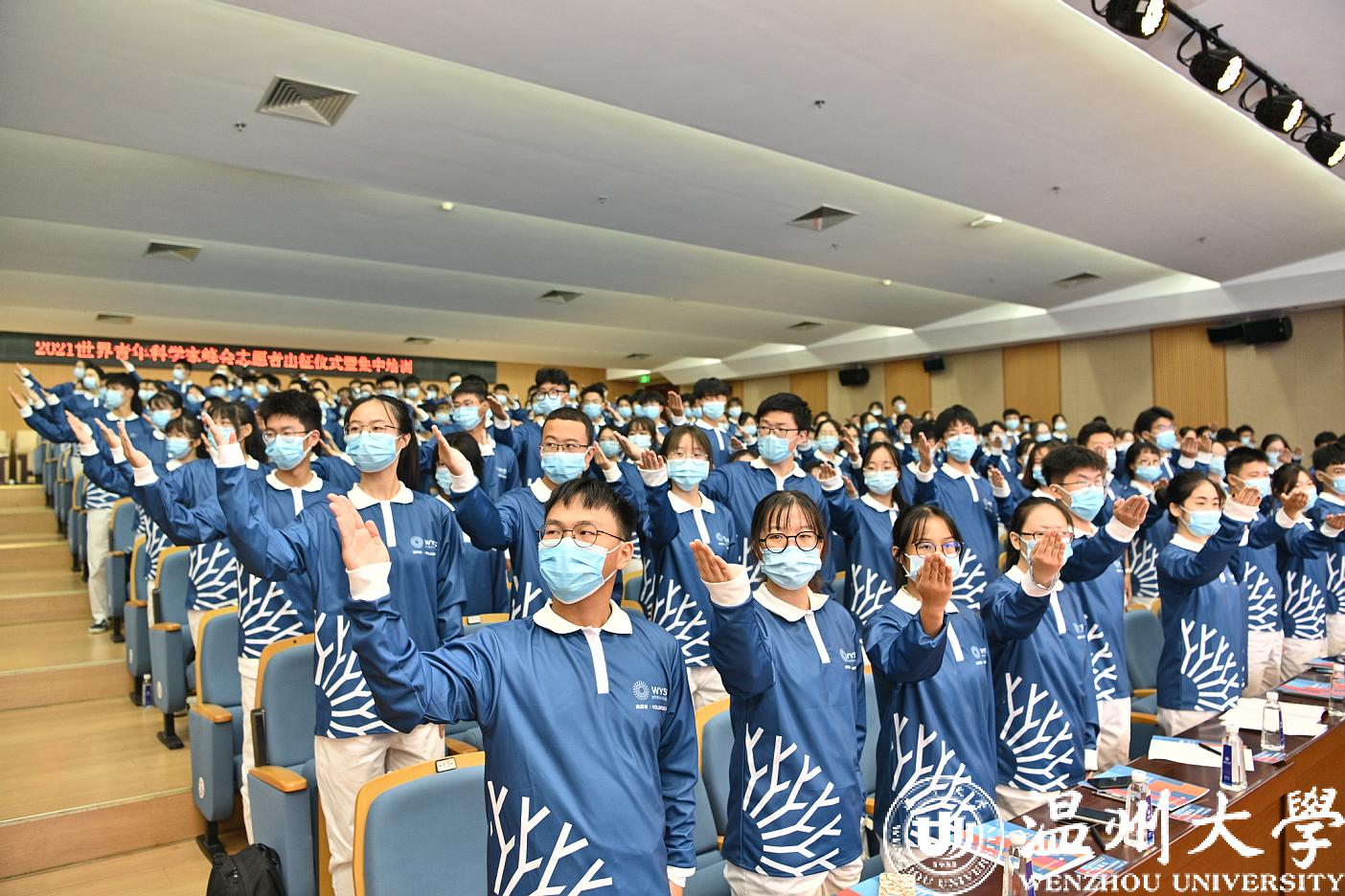 近日,2021世界青年科学家峰会志愿者出征仪式在香蕉视频 南校区岩松堂举行,752名青年志愿者集结到位、宣誓出征,峰会期间他们将用真心和热情服务来温参会的四海宾朋。